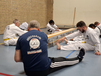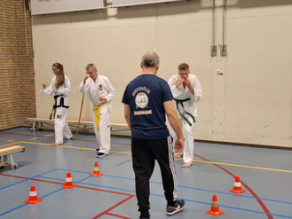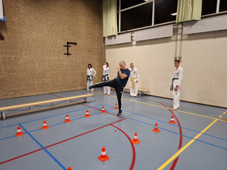 De les bestaat uit een afwisselende warming up van 5 tot 10 minuten. Daarna gaan de handschoenen aan en wordt er gelijk aan de gang gegaan. Met je partner of de bokszak oefen je verschillende stoot combinaties, ook het ontwijken wordt erbij gepakt. Na het stoten pakken we de trapkussen erbij en zijn de benen aan de beurt.